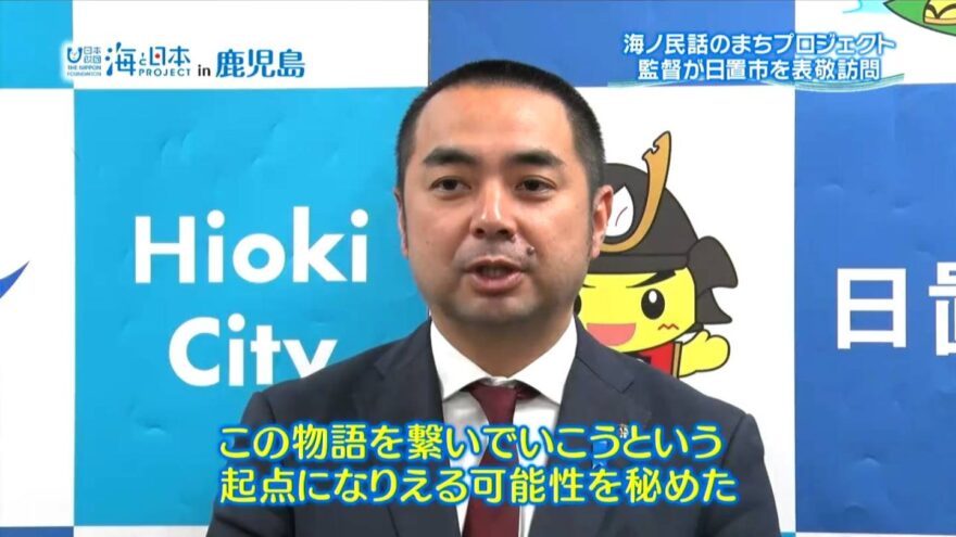 このたび、市に伝わる民話「遠見番山の人魚」がアニメ化され、制作した沼田心之助監督が日置市役所を表敬訪問しました。